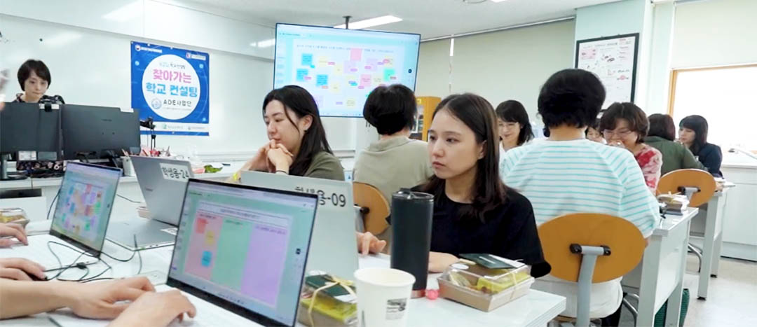 “우리 아이들이 평소에도 디지털 기기를 사용하는 시간이 너무 많은데, 학교 수업시간까지 디지털 기기를 사용하면 사고력 발달에 부정적인 영향이 있지 않을까 걱정을 했습니다. 찾아가는 학교 컨설팅을 진행하며 심층 면담과 회의를 통해 관심을 갖게 되면서 옛날 방식의 교육을 고수할 수는 안되겠다고 느꼈고, 디지털 기기 사용에 대해 조금 긍정적인쪽으로 생각이 바뀌었습니다.”